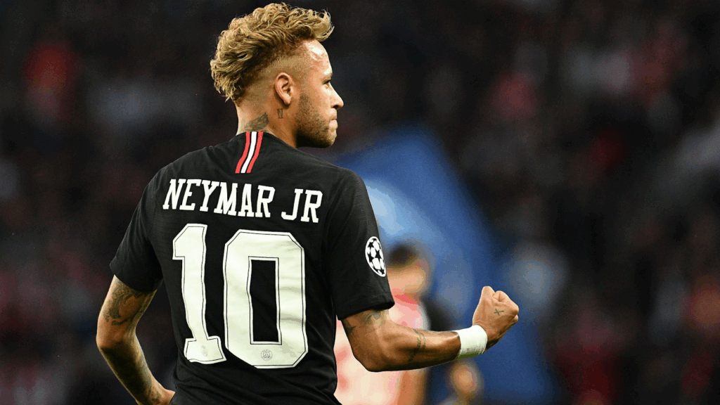 Neymar in PSG’s number 10 jersey, representing his pivotal role in the club’s attacking lineup